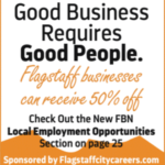 In an effort to support local businesses and combat the labor shortage, Flagstaff Business News is launching a new employment section beginning this month, “Good Business Requires Good People,” sponsored by FlagstaffCityCareers.com. Flagstaff businesses will receive 50% off the cost of their employment ads in this section, as a result of the city’s sponsorship. “The concept was created to bring much-needed assistance to Flagstaff businesses in their recruiting efforts,” said FBN Publisher Amy … [Read more...] about FBN, City of Flagstaff Partner to Strengthen Workforce